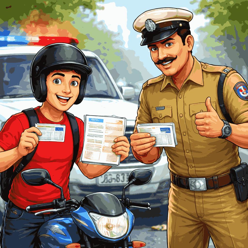 You were riding without proper vehicle documents—stopped by police, fined, and stressed. Risk, delay, and unnecessary expense.